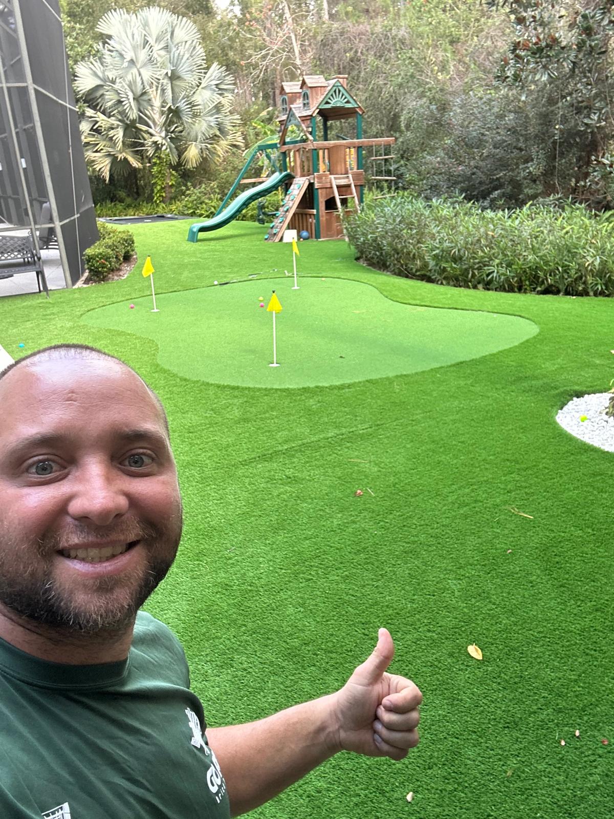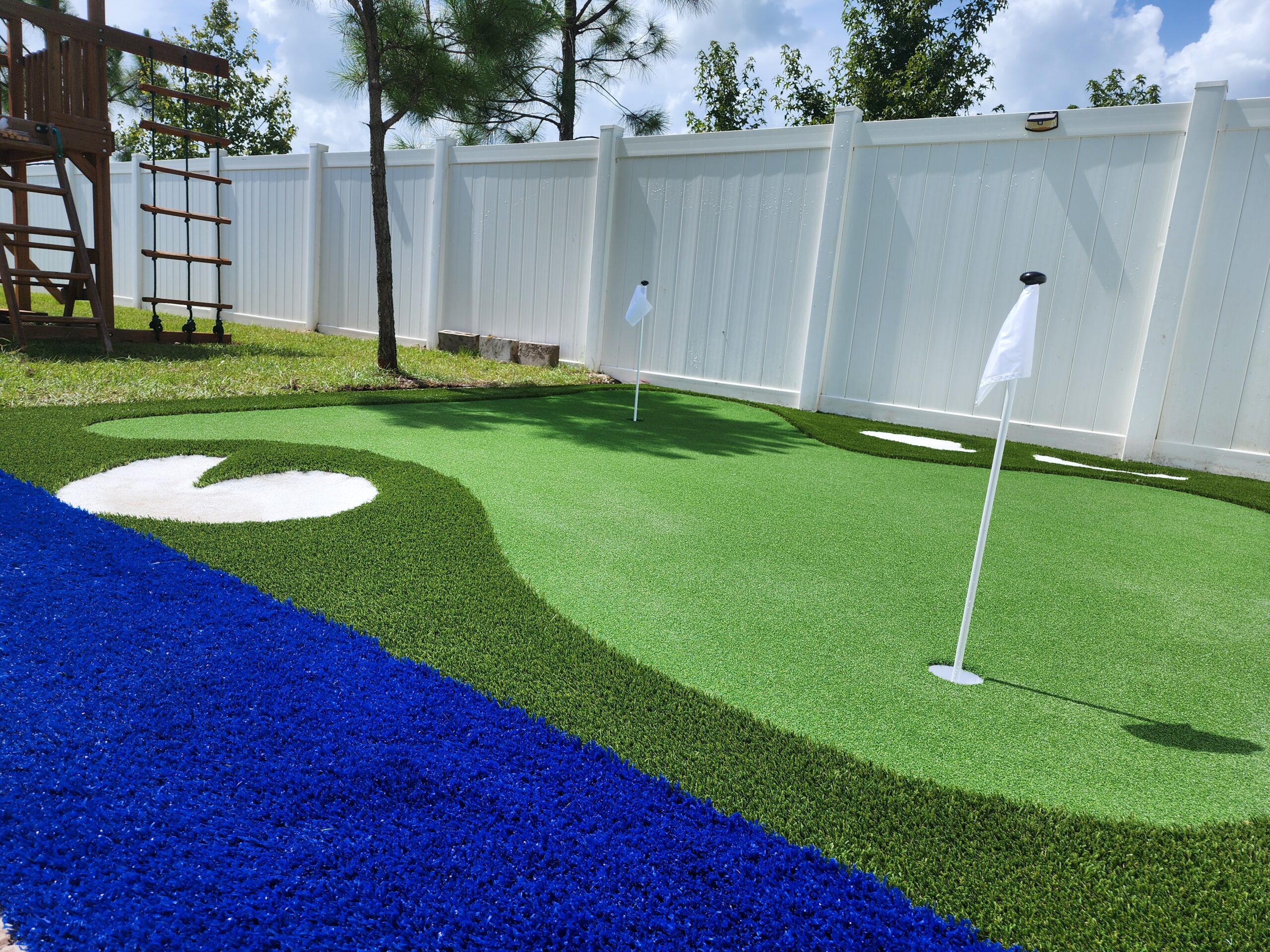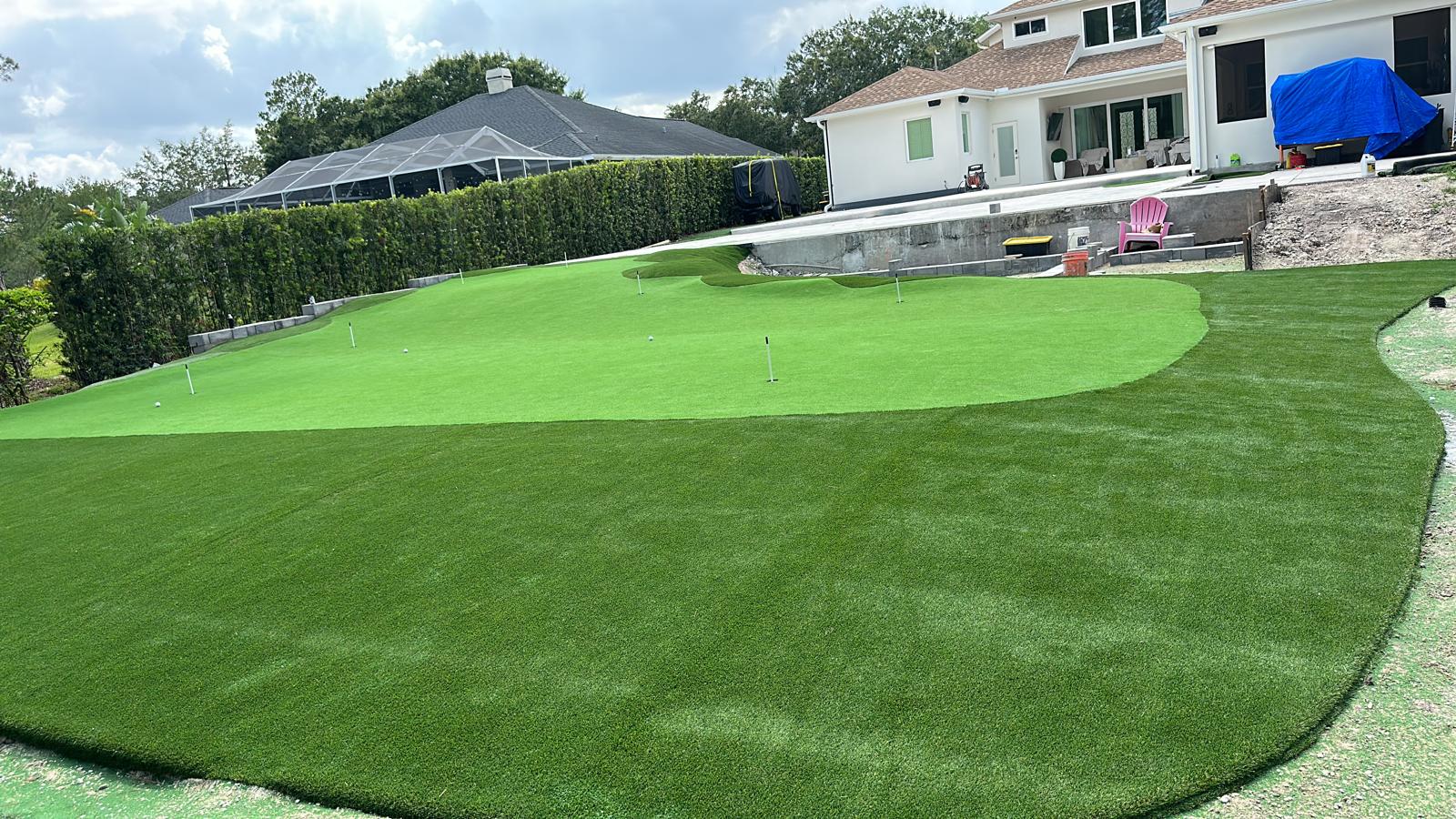 Allow our team to install a custom astroturf putting green in your home, transforming your outdoor space into a golfer’s paradise. Whether you’re looking for a simple practice area or a full-scale professional putting green, we have you covered. We can design and install features such as sand traps, rough areas, tee turf zones, and a complete setup with cups, flags, and poles to replicate the feel of a professional golf course. Our team of experts is dedicated to crafting a tailored putting green that matches your vision, ensuring an enjoyable and convenient golfing experience right in your backyard.